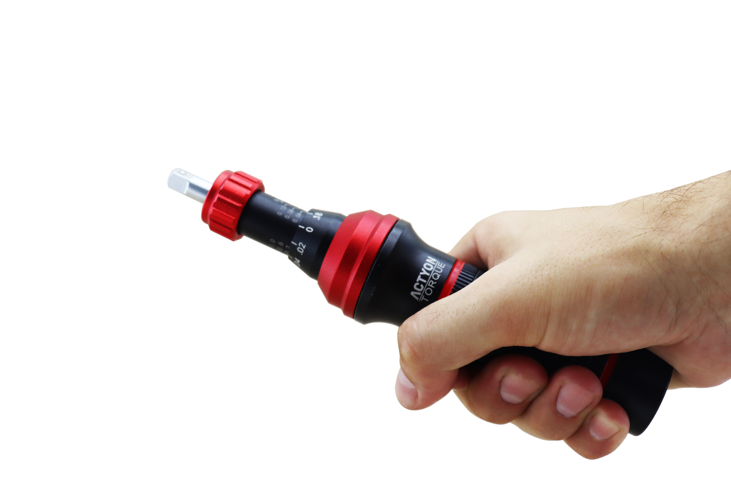 . As marcações na alça indicam a configuração do torque. O seu mecanismo interno é composto por um embolo, fuso e uma mola que é calibrada para torques especificados em cada modelo. Conforme é selecionado o torque na empunhadura do torquimetro o fuso aplica uma compressão na mola, maior compressão(torque maior) ou menor compressão(torque menor). Quando o torque é alcançado, o detentor desarma e a alavanca interna atinge a parede do torquimetro, produzindo assim o característico som de “click”.